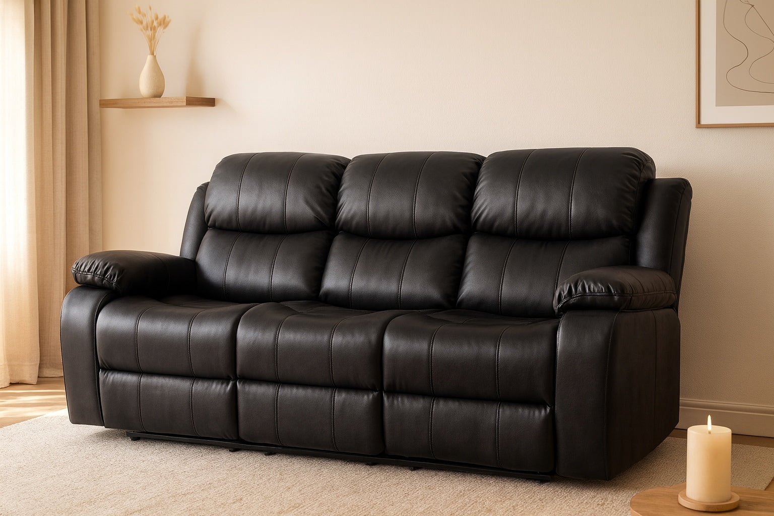 El mas cómodo y confortable sofá Berger reclinable de 3 cuerpos tapizado en eco-cuero o cuero sintético PU en color...